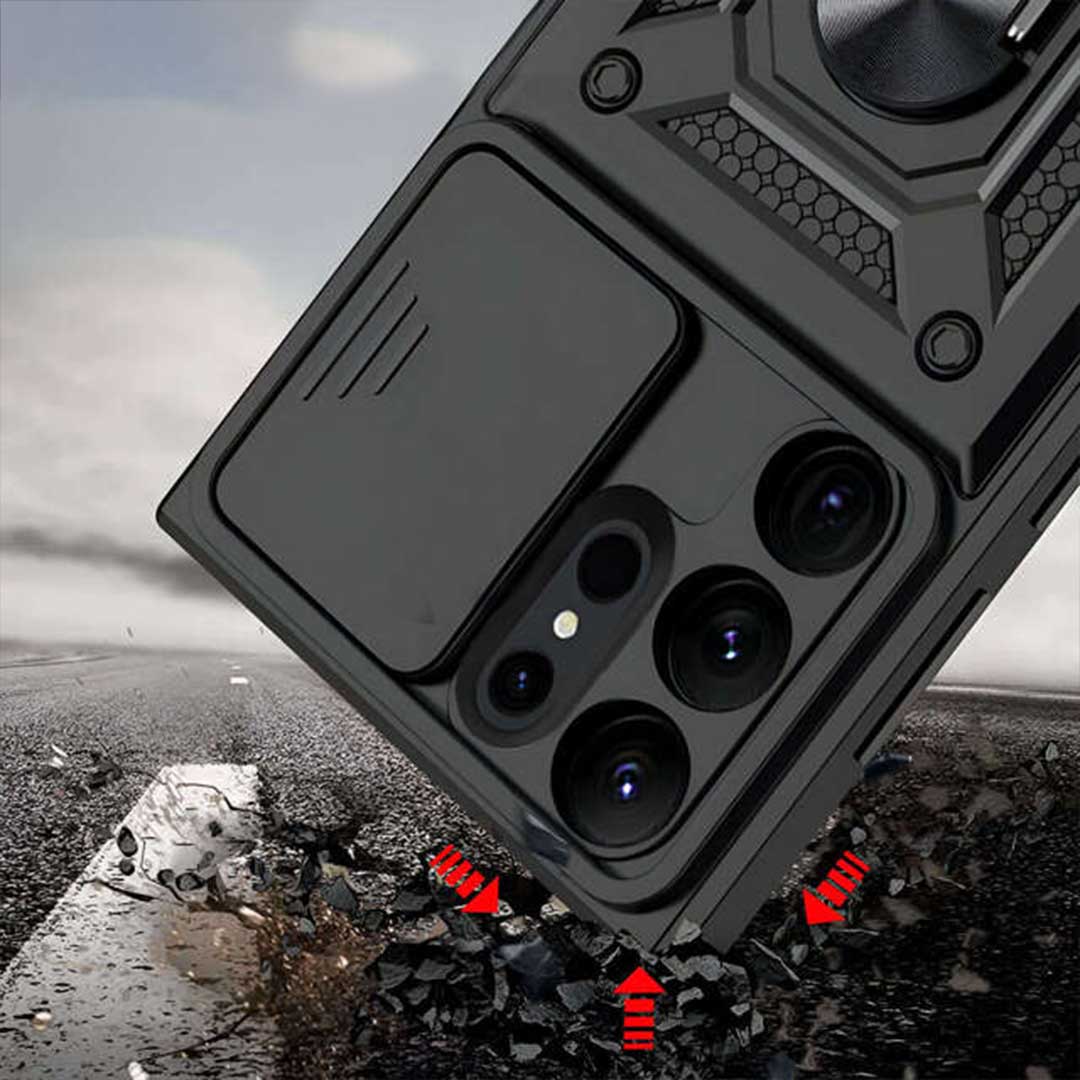 Galaxy S24 ULTRA 5G Armor Case with Slide Camera Cover[Military Grade 16ft. Drop Tested] Magnetic Ring Kickstand Protective Phone Case